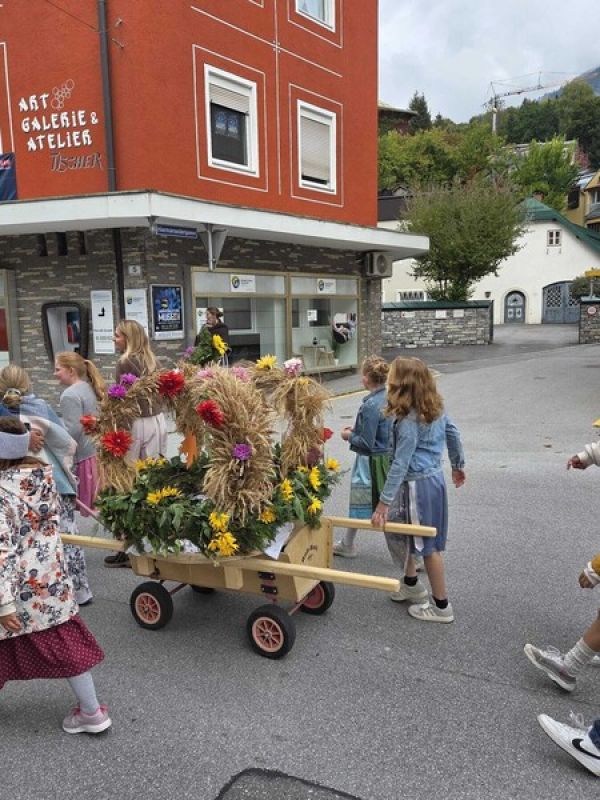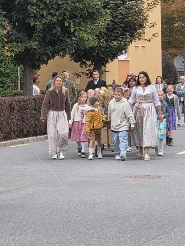Beim Erntedankfest durften sie ihr Werk mit Stolz präsentieren und beim Festumzug mitmarschieren. Ein herzliches Dankeschön an alle Beteiligten für das Engagement und die kreative Arbeit!